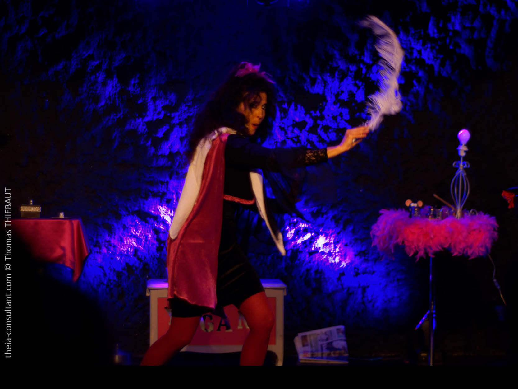 Magicienne professionnelle, les tours sont bluffant et les parents sont tout autant étonnés : une aiguille qui transperce un ballon, un poisson rouge qui apparaît d'un breuvage magique ou encore un guéridon qui vole.