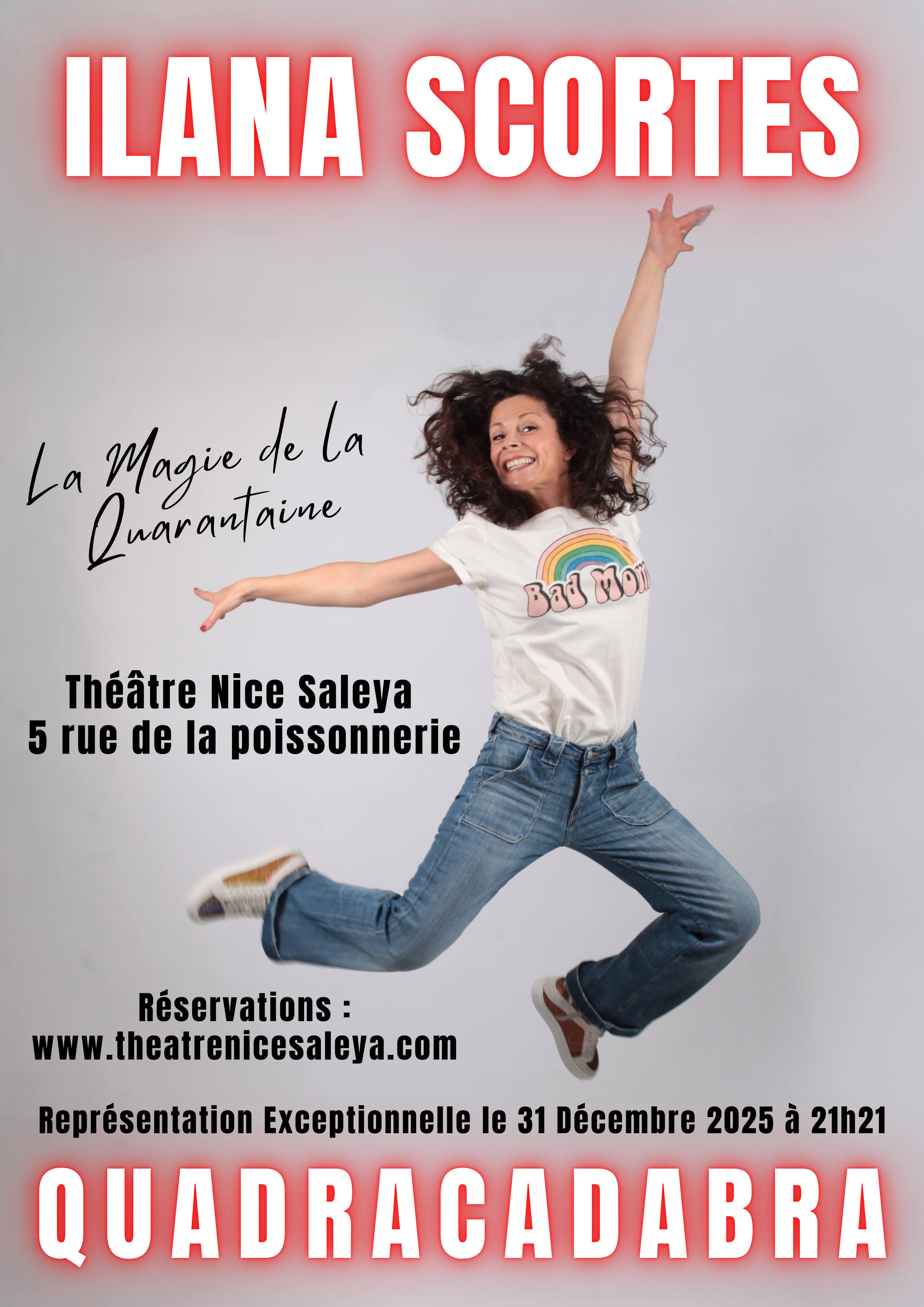 Pour clore cette Saint-Sylvestre, place à Quadracadabra, le one-woman-show d’Ilana Scortes : un spectacle d’humour sur la « magie » de la quarantaine, ce moment où l’on cesse de se juger, où l’on ose davantage… et où l’on apprend surtout à s’amuser de tout.